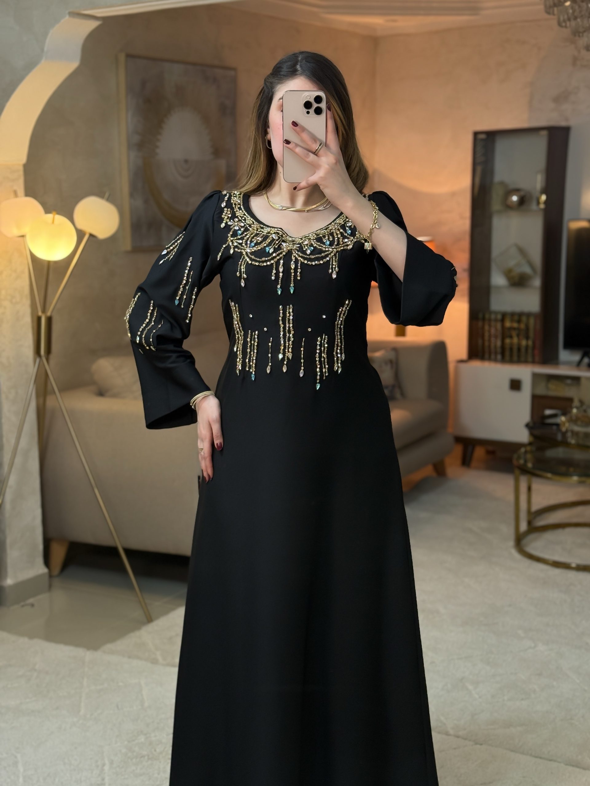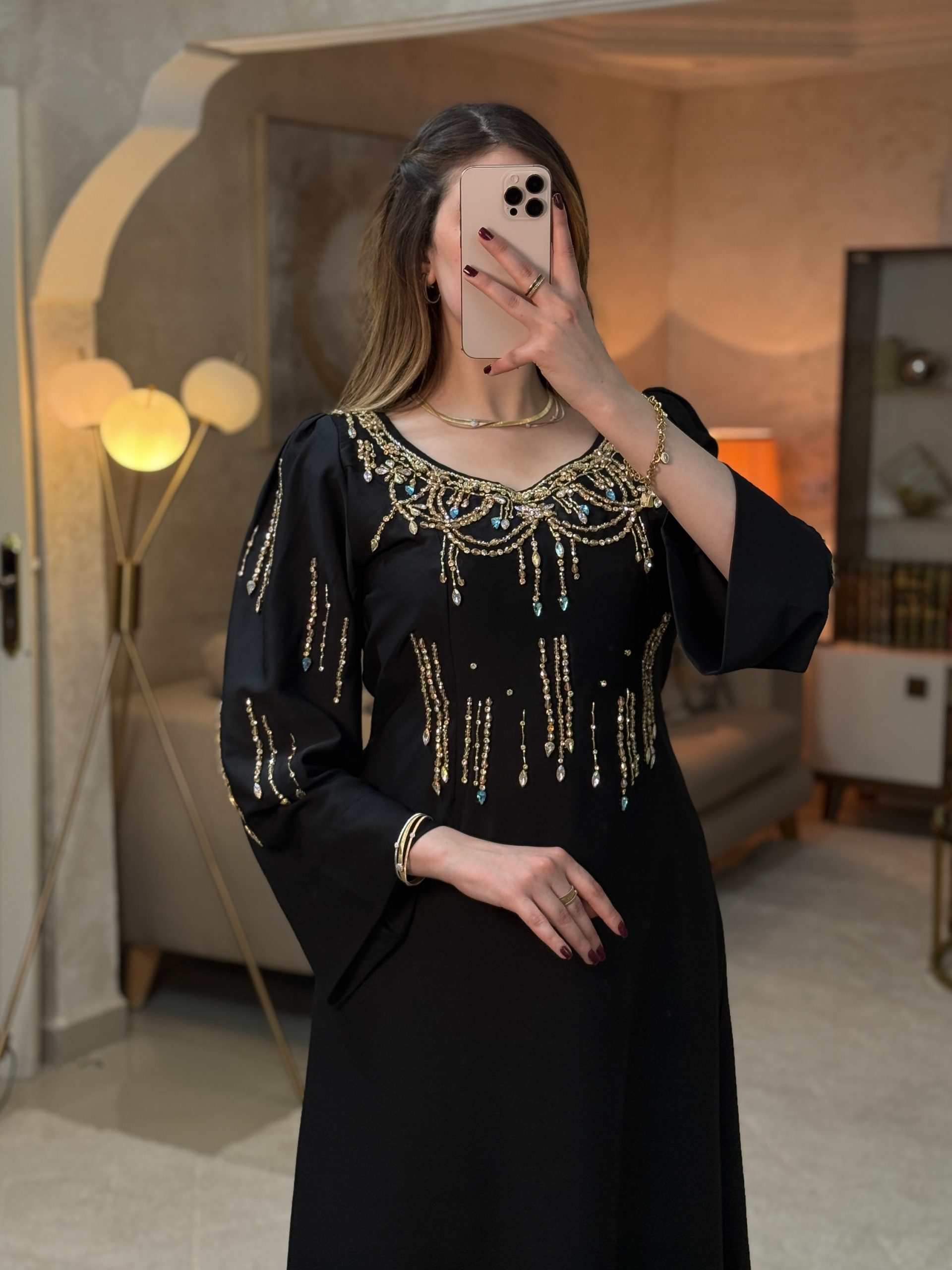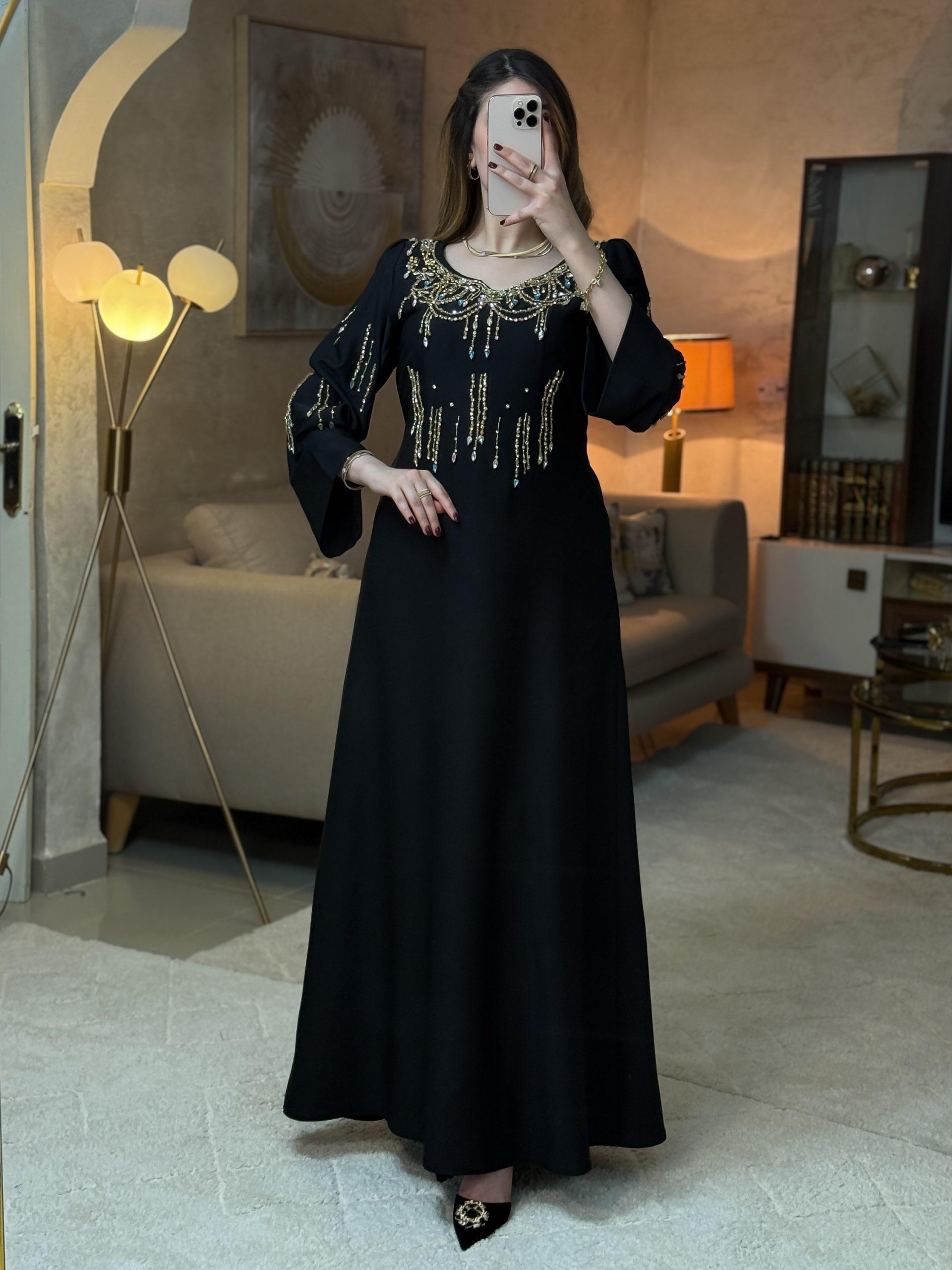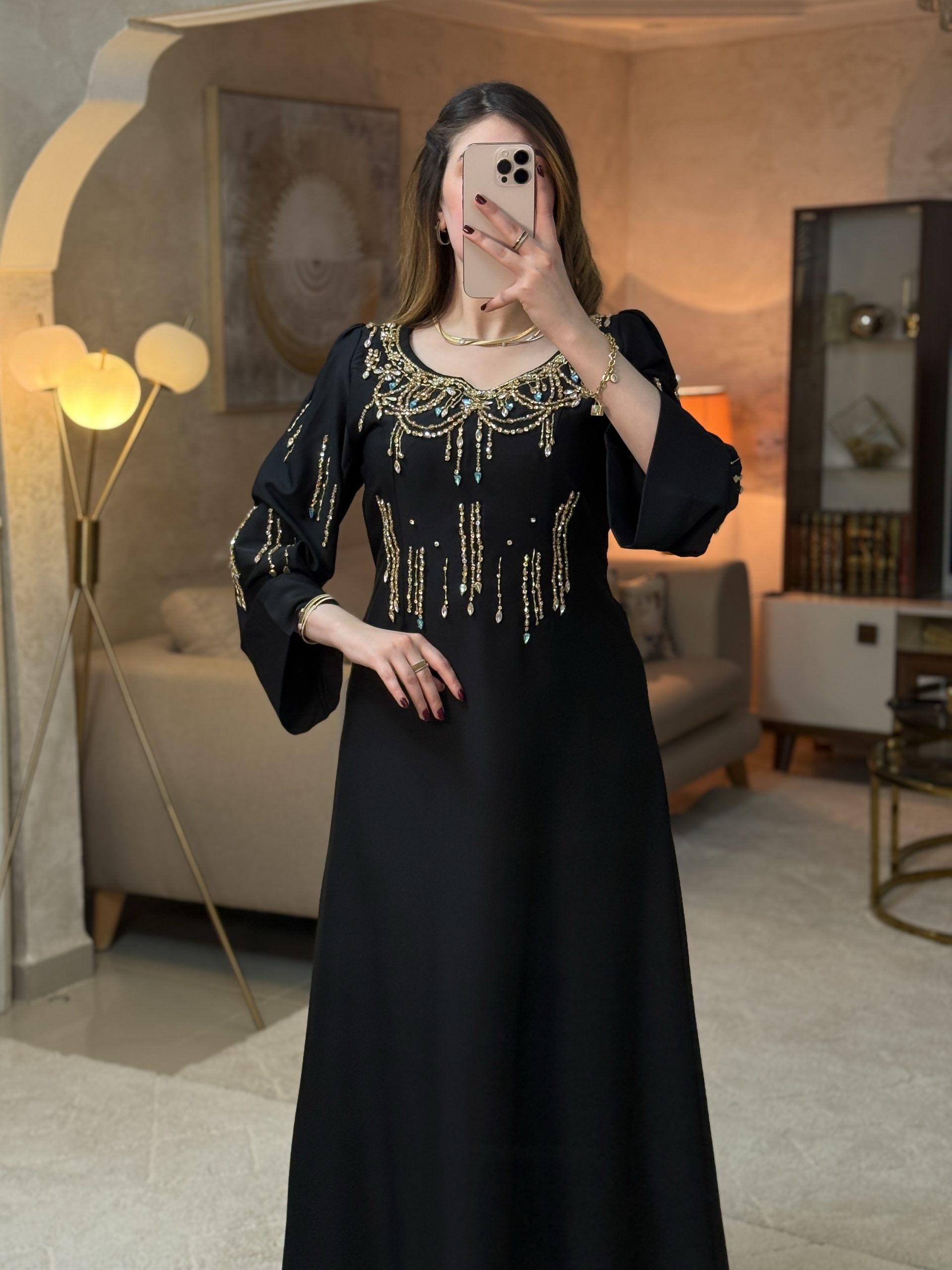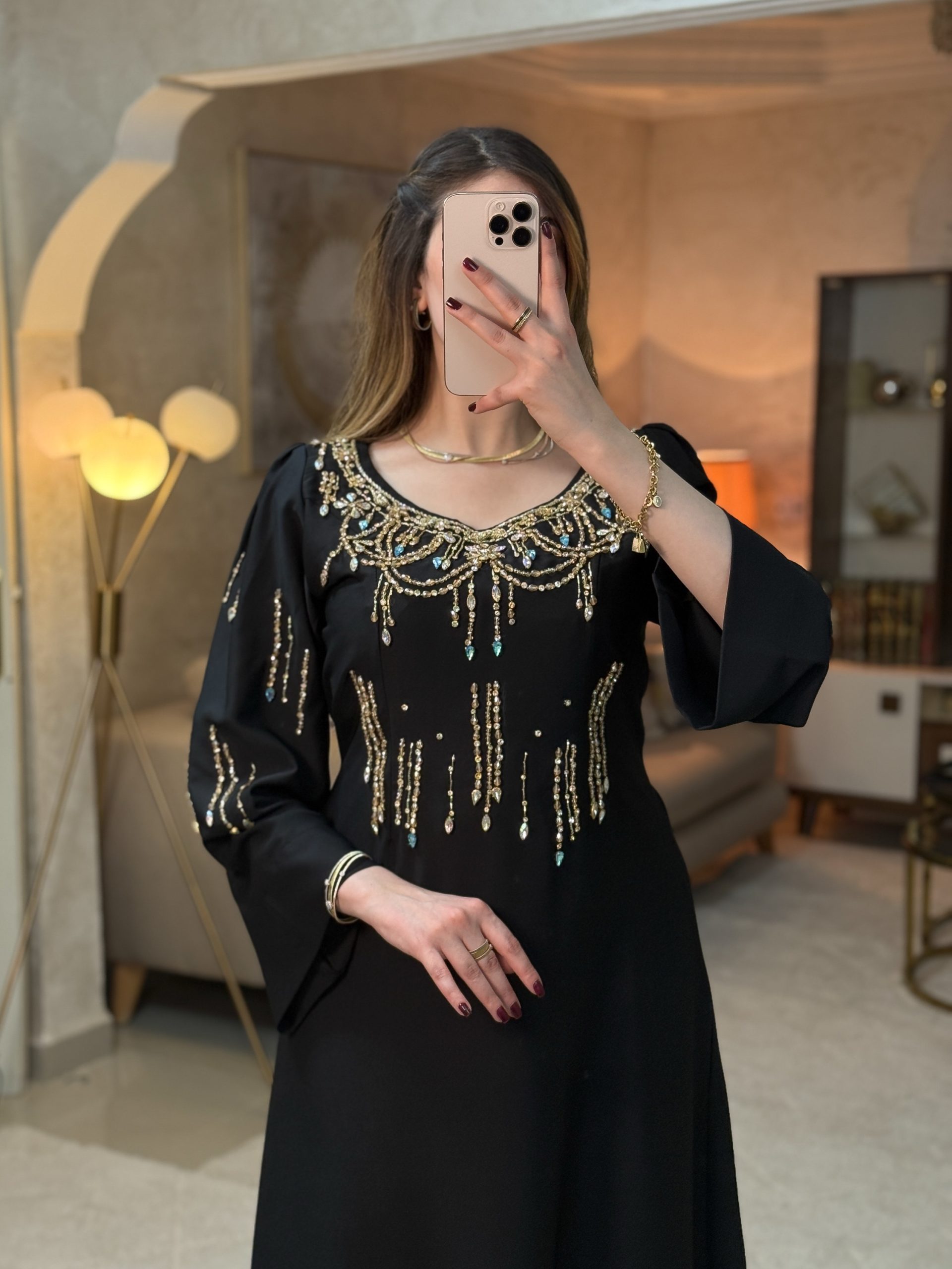 فستان جسور تجسيد للأناقة والفخامة والأنوثة، حيث يبرز التطريز اليدوي بالبرلاج الحر التفرد والذوق الرفيع .