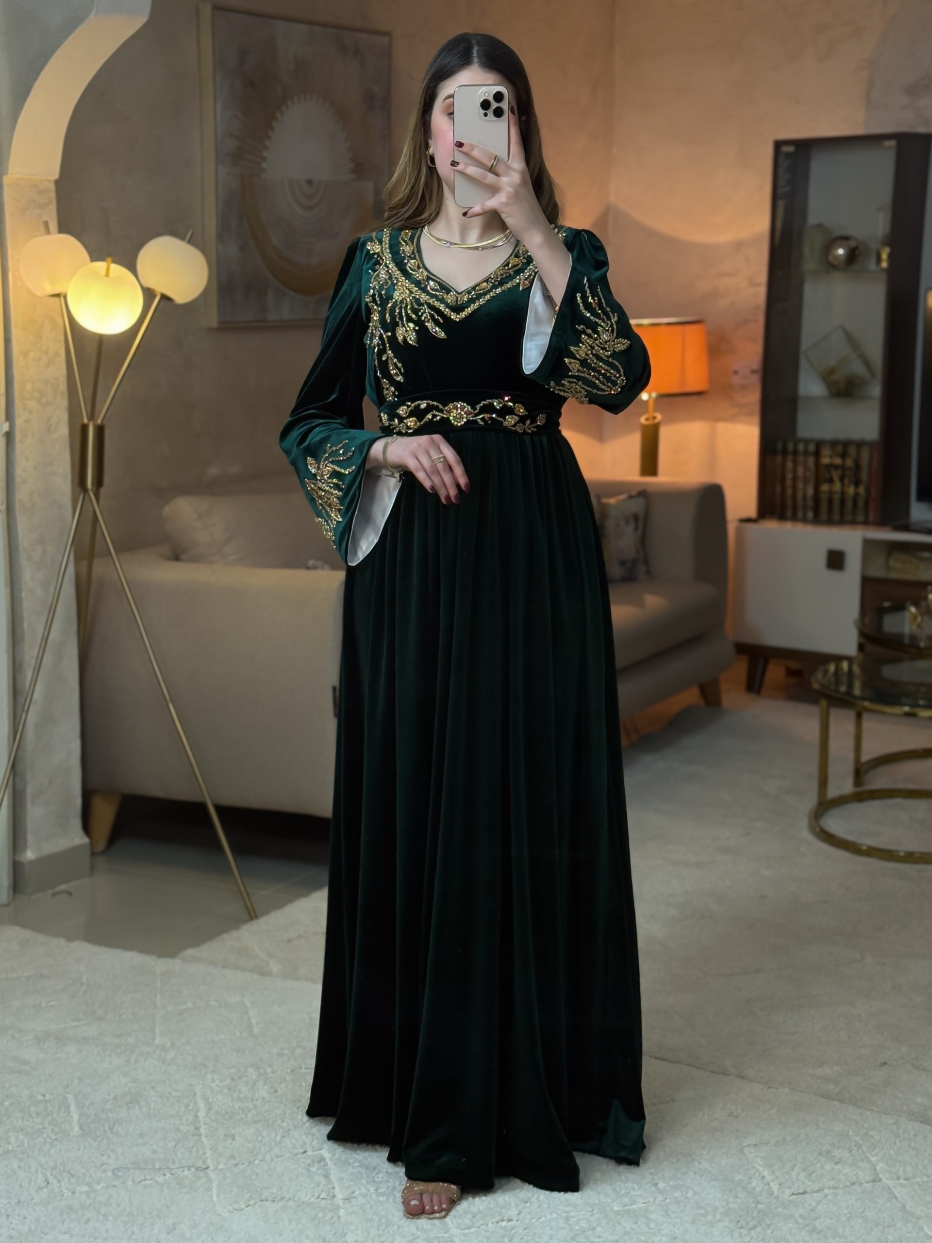 خامة مختارة بعناية لتوفّر راحة وأناقة في آنٍ واحد، ما يجعل زمرد خيارًا مثاليًا للمناسبات الراقية والسهرات المميّزة
