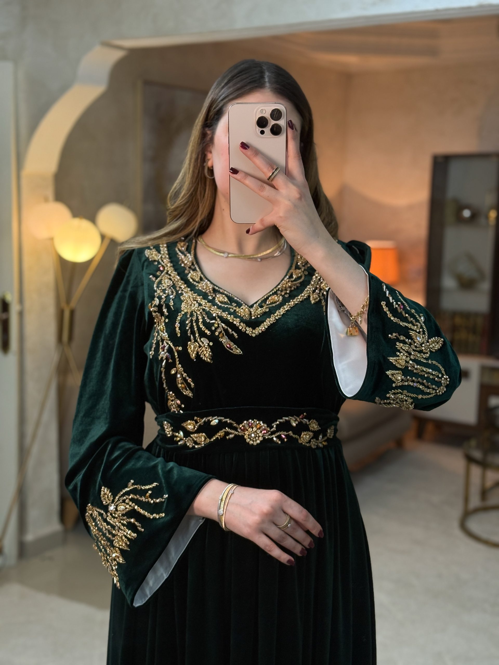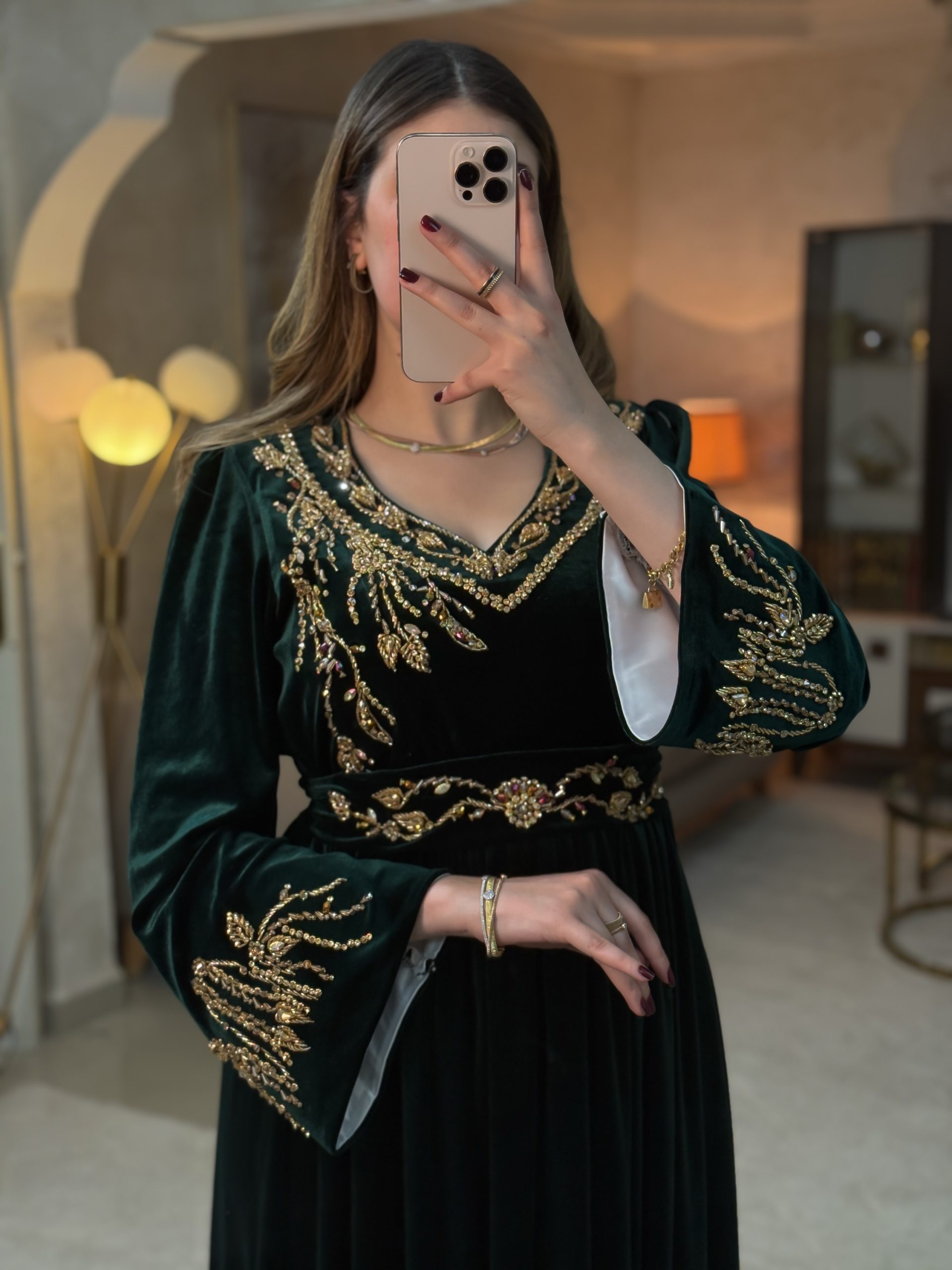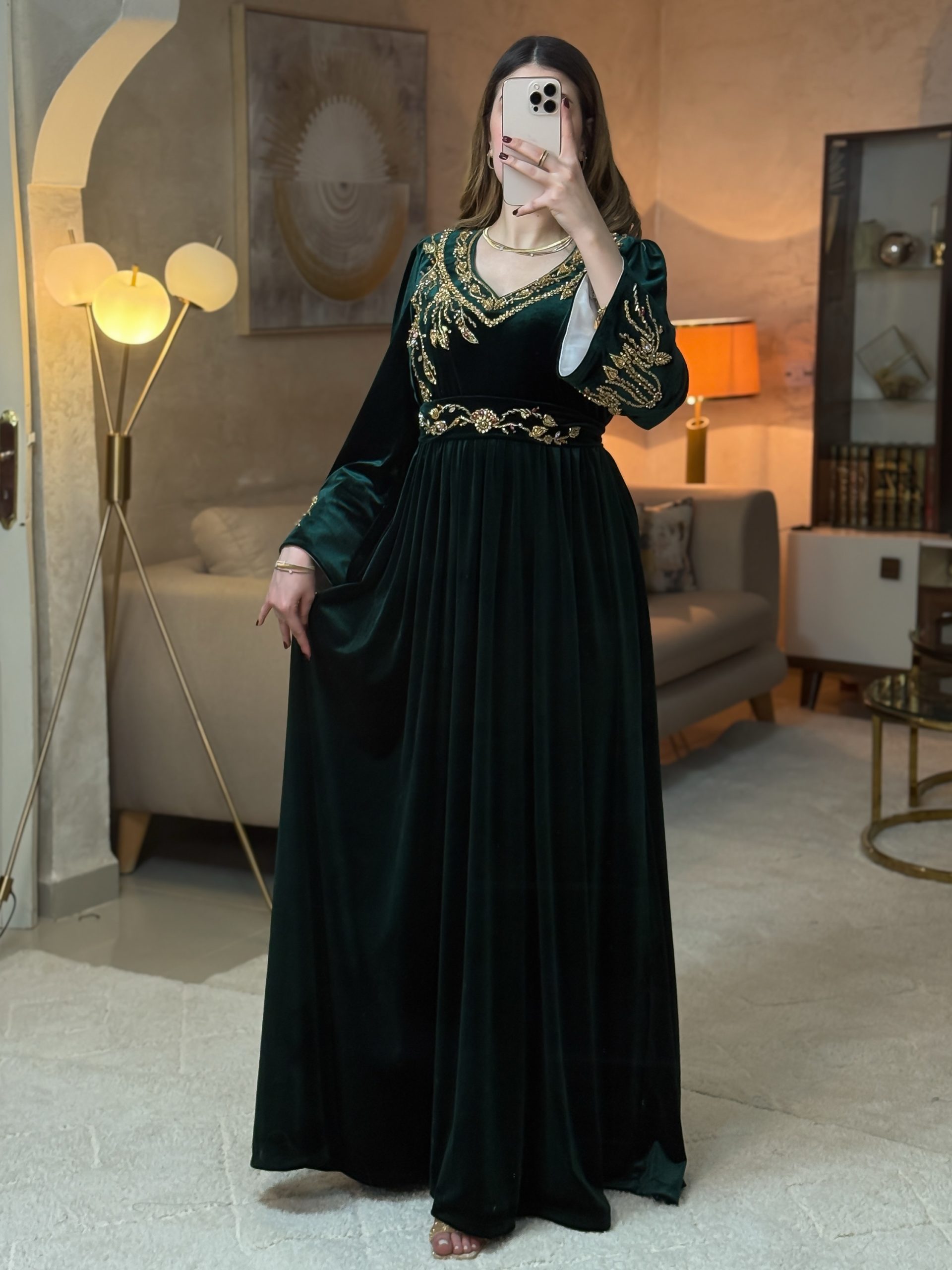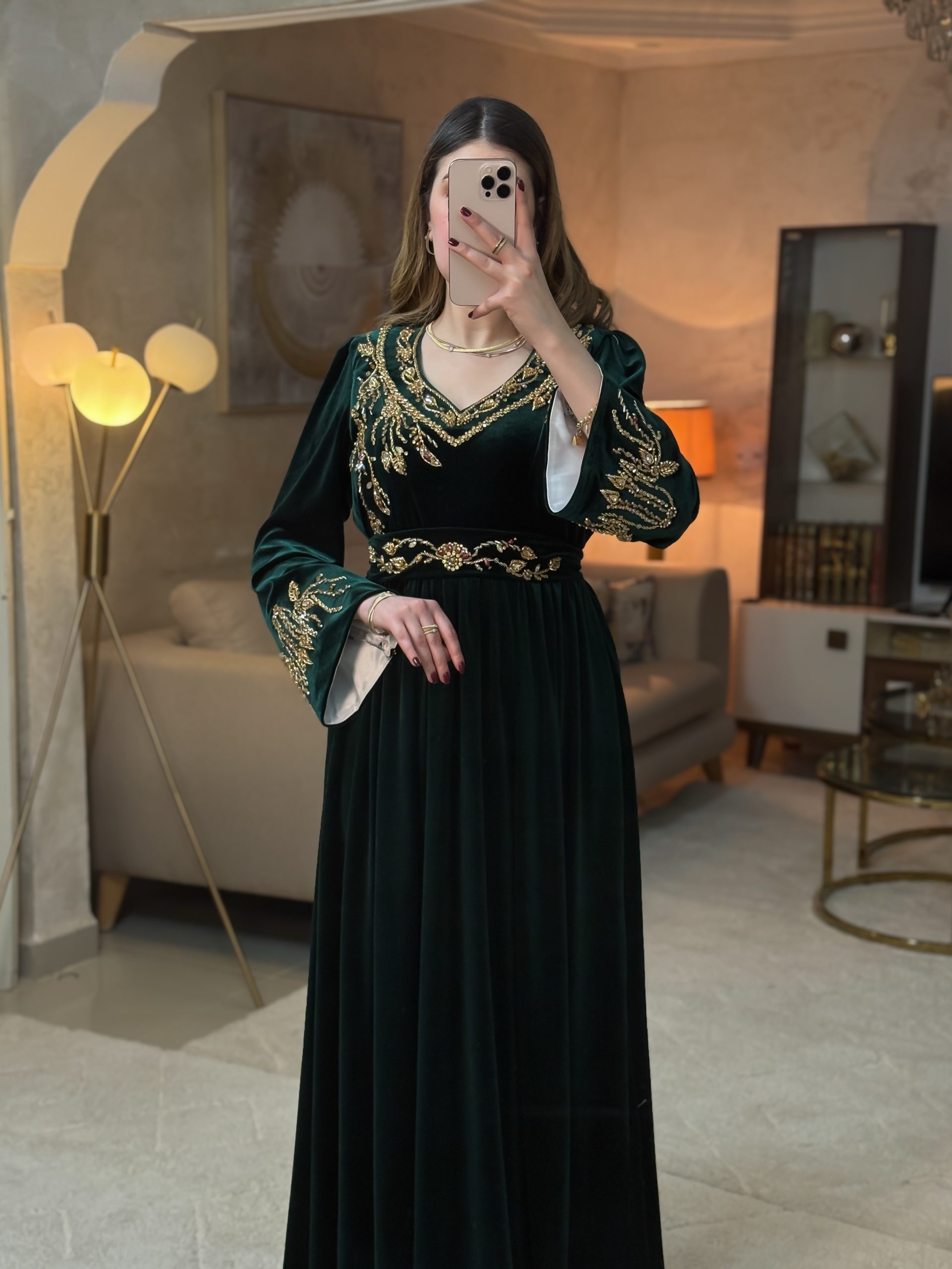 قطعة استثنائية تجسّد الفخامة في أنقى صورها، صُمّم فستان زمرد ليعكس هيبة الحضور وأناقة التفاصيل الراقية.