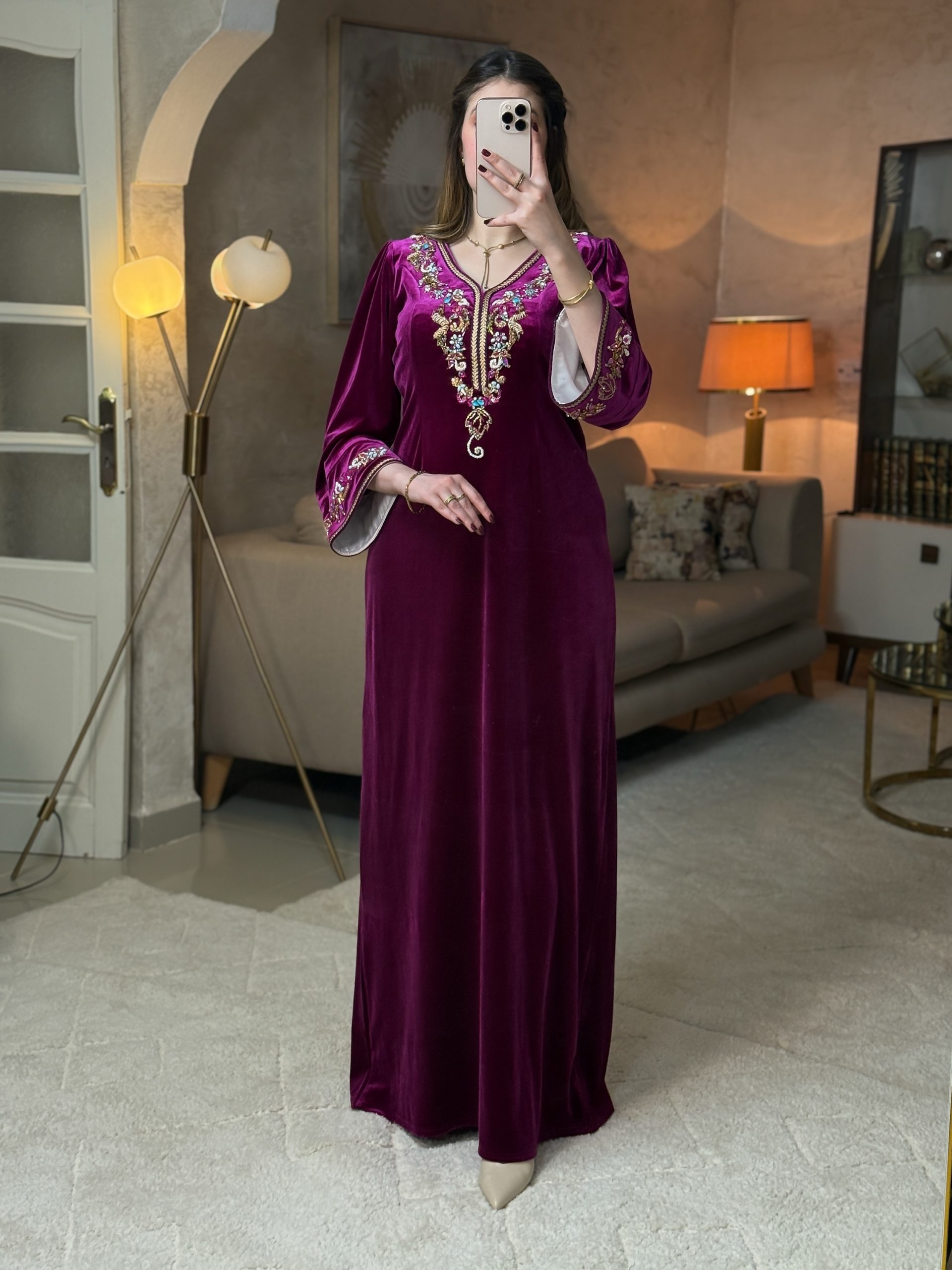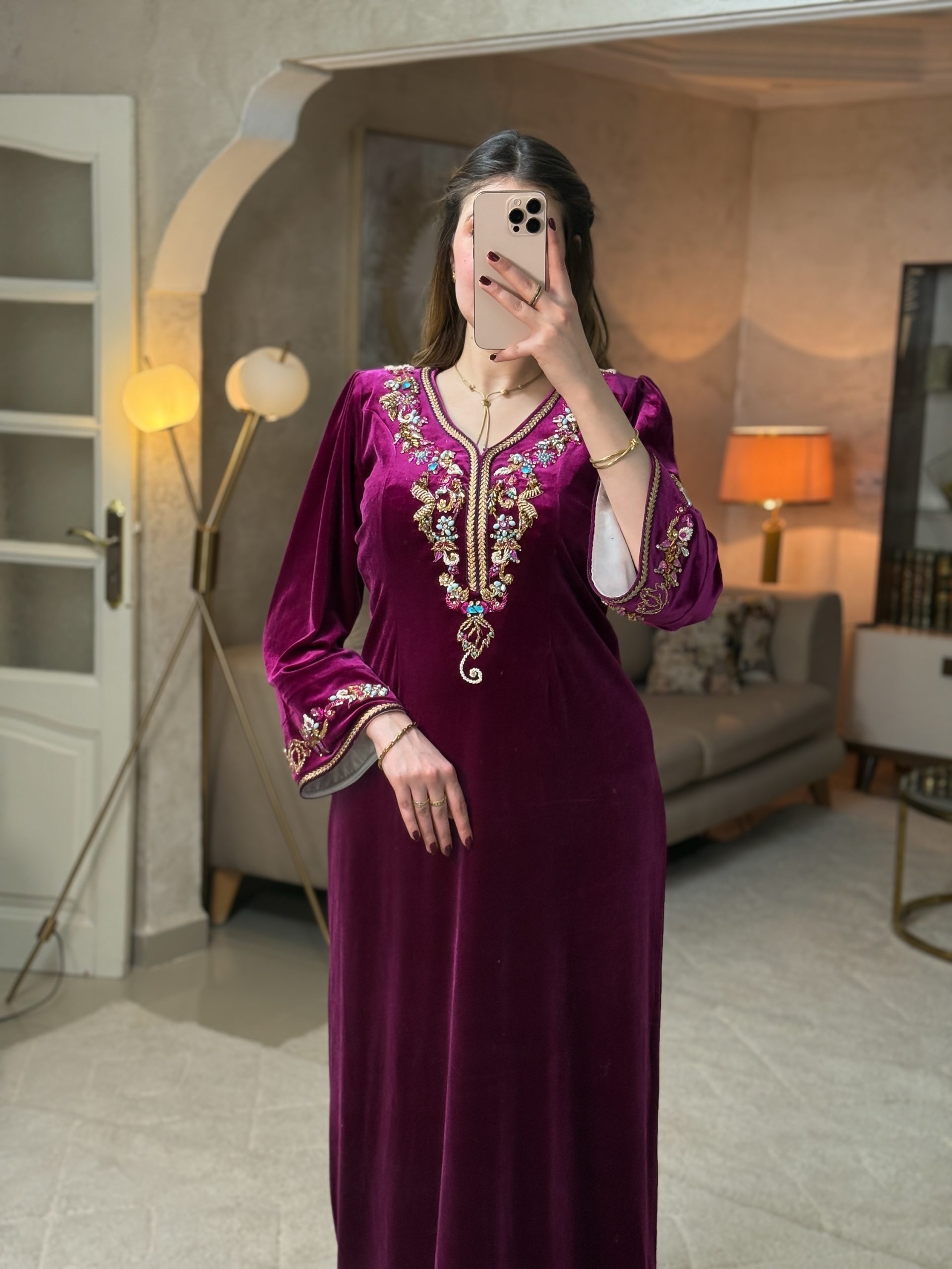 فستان أنثوي بتصميم راقٍ وقَصّة انسيابية تمنح إطلالة متوازنة وأنيقة. يتميّز بتطريز يدوي بالبرلاج الحر يضفي لمسة فخامة ناعمة دون تكلّف، مع خامة مريحة وانسياب جميل يرافق الحركة.